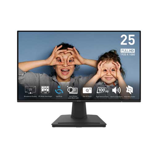 مانیتور MSI MP252 با صفحه‌ نمایش 24.5 اینچی، پنل IPS، رزولوشن Full HD و نرخ نوسازی 100 هرتز، تجربه‌ ای روان و دقیق را برای کاربران حرفه‌ ای فراهم میکند. فناوری‌های محافظت از چشم مانند Anti-Flicker و Less Blue Light، به همراه طراحی ارگونومیک، این مانیتور را به گزینه‌ ای ایده‌آل برای استفاده‌ های طولانی‌ مدت تبدیل کرده‌اند.